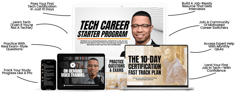 I’m also giving you access to my private Tech Starter Community, where hundreds of students just like you are sharing wins, asking questions, and staying motivated together. You’re never doing this alone.